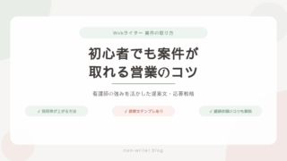 Webライター初心者が案件を取るための方法・営業のコツ・提案文の書き方を解説。看護師の専門知識を活かした応募戦略や、採用後に継続依頼につなげるポイントまでわかりやすく紹介します。