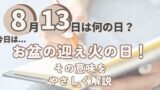この記事では、1月13日がどんな記念日なのか、その由来や関係する出来事、著名人の誕生日まで幅広く紹介します。