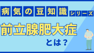健康コラム 病気の豆知識シリーズ|前立腺肥大症 前立腺肥大症は中高年男性に多く見られる排尿トラブルの原因です。主な症状や治療法、日常でできる予防法をわかりやすく解説します。 2025.10.09 健康コラム男性特有の病気病気の豆知識シリーズ